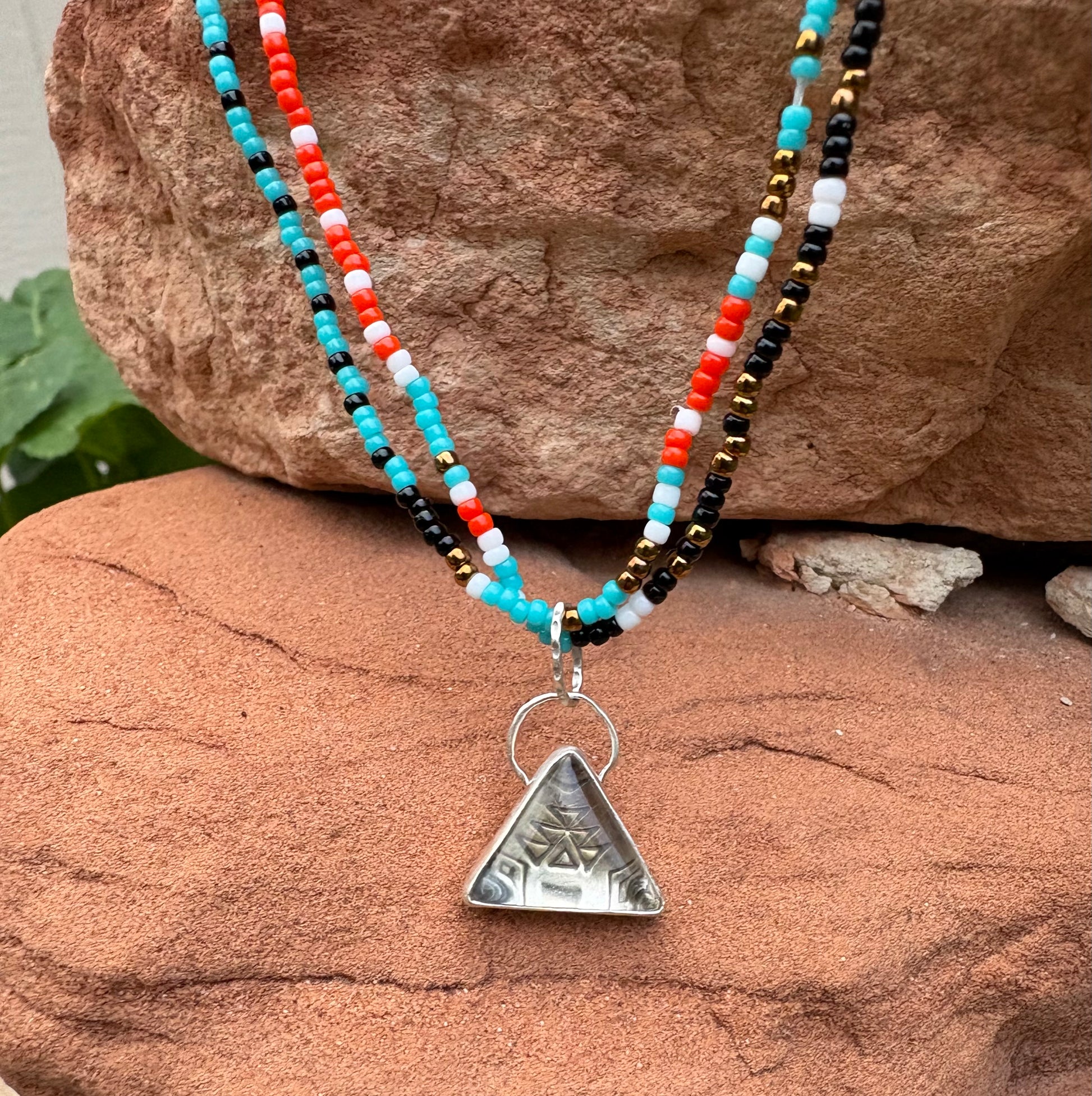 Triangle Stamped Beaded Necklace